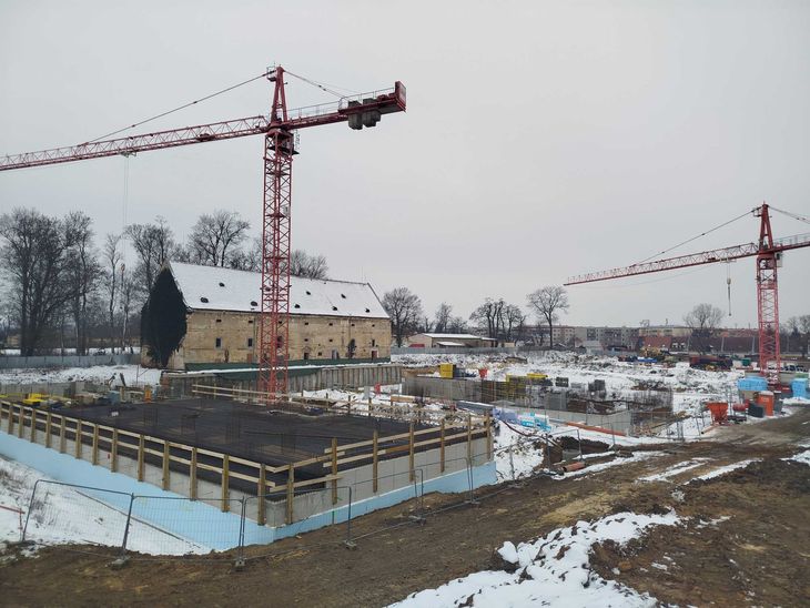 Zahájili jsme zemní práce, tedy přípravu podkladu pro základovou desku. Na domech C a G vzniká nosná betonová konstrukce v prvních podzemních podlažích. V budově C zároveň instalujeme inženýrské sítě a řešíme odvod dešťové vody. Děláme zkrátka vše pro to, abychom mohli ke konci příštího roku kolaudovat.