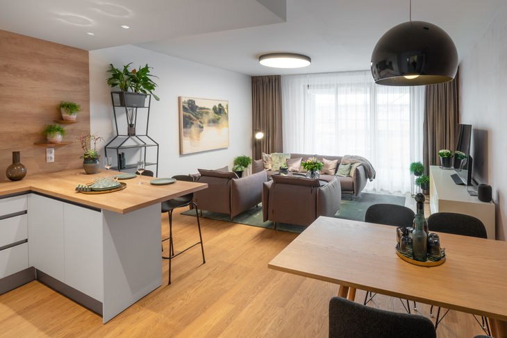 Komfort a pohodlí přináší i sama Praha 6, plná zeleně a klidu. Kromě blízké zahrady Břevnovského kláštera se nachází v okolí projektu tři velké parky. Například sportem proslulá Ladronka či rozlehlá Obora Hvězda, ideální na procházky, venčení psů nebo piknik. Obchody, služby, školy a další pro život důležité věci leží v té správné vzdálenosti od projektu, nenarušují klid rezidentů a přitom to k nim není daleko. Terasy Břevnov jsou i díky tomu unikátním místem ke spokojenému životu ve velkoměstě. Teď už zbývá se jen nastěhovat.